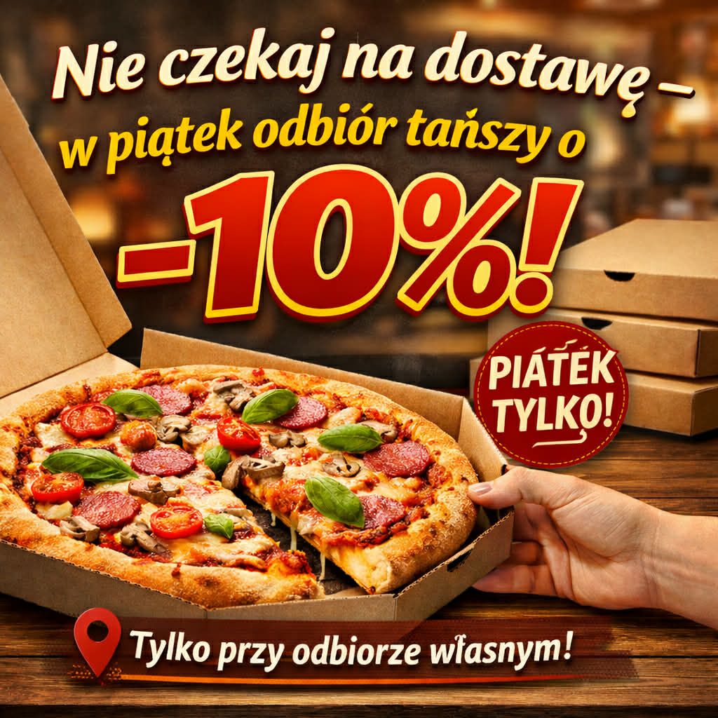 Przez cały weeknd co 5 pozycja w naszym menu z pizz w dowolnym rozmiarze -10% taniej.